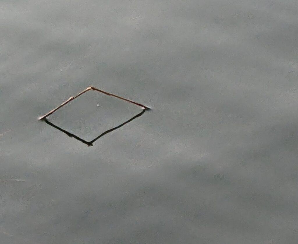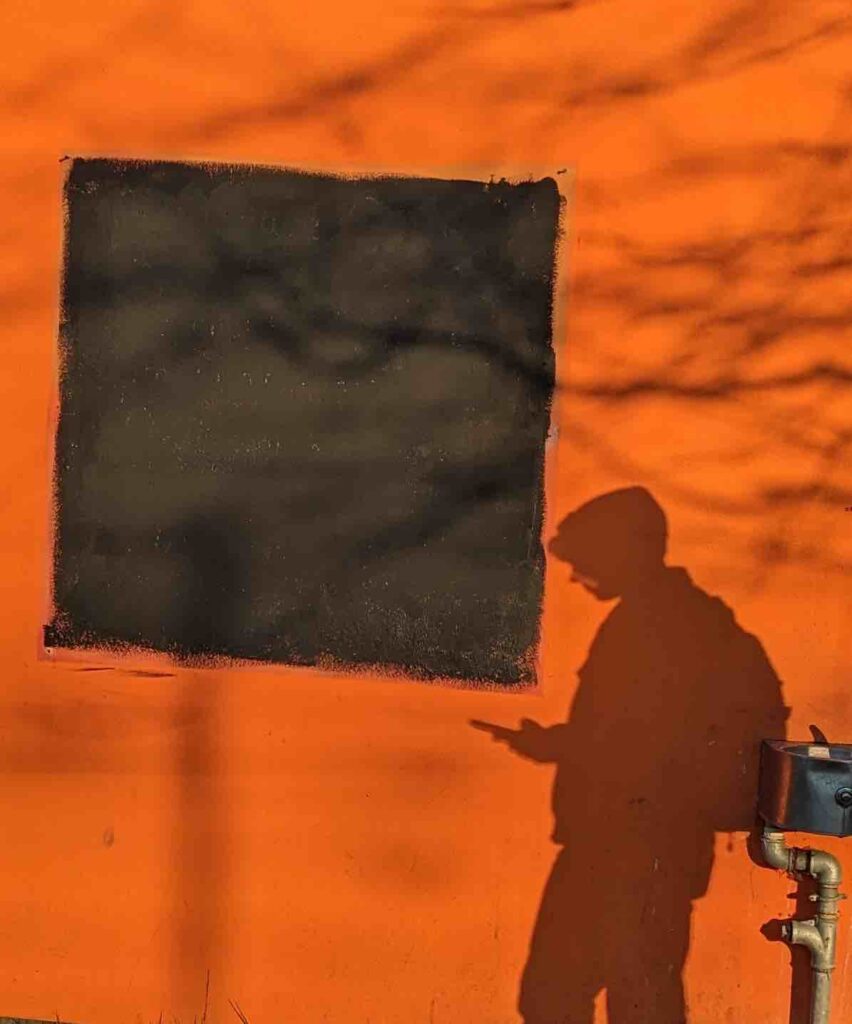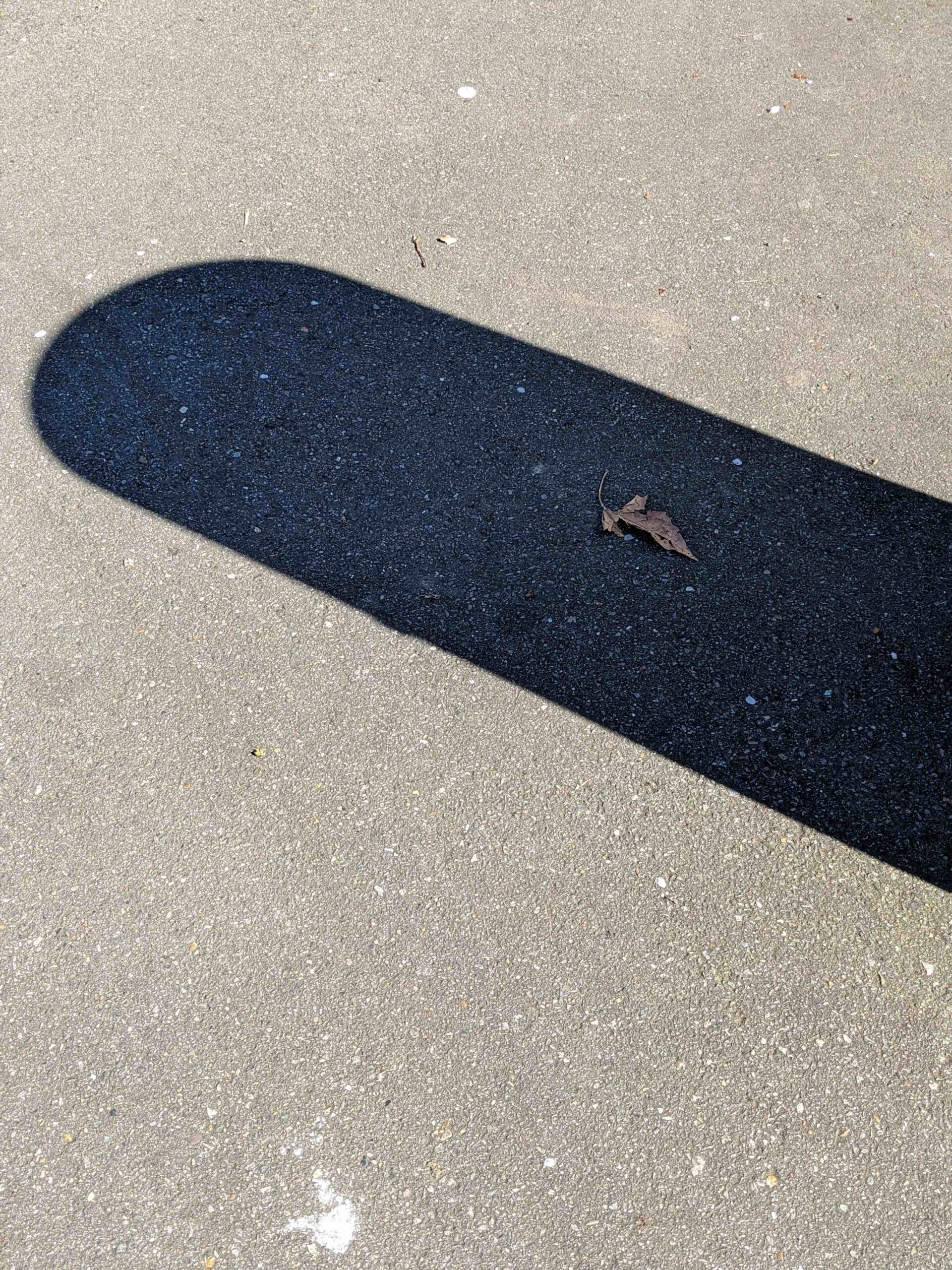 A silhouette pedals leisurely ahead of you. Out of the blue, another pushes in, turning left just before you, joining us now as a trio. Then, with whirring sounds, the new silhouette fades softly from the stage. Instead, a stand-still silhouette appears on you left, only there is a slight movement on the top of a little square pattern. A midday sun and shadows.